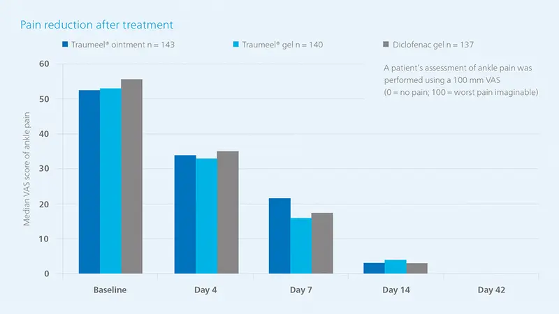 1. González de Vega C, Speed C, Wolfarth B, González J. Traumeel vs. diclofenac for reducing pain and improving ankle mobility after acute ankle sprain: A multicentre, randomised, blinded, controlled and non-inferiority trial. Int J Clin Pract. 2013;67(10):979-989. doi:10.1111/ijcp.12219.